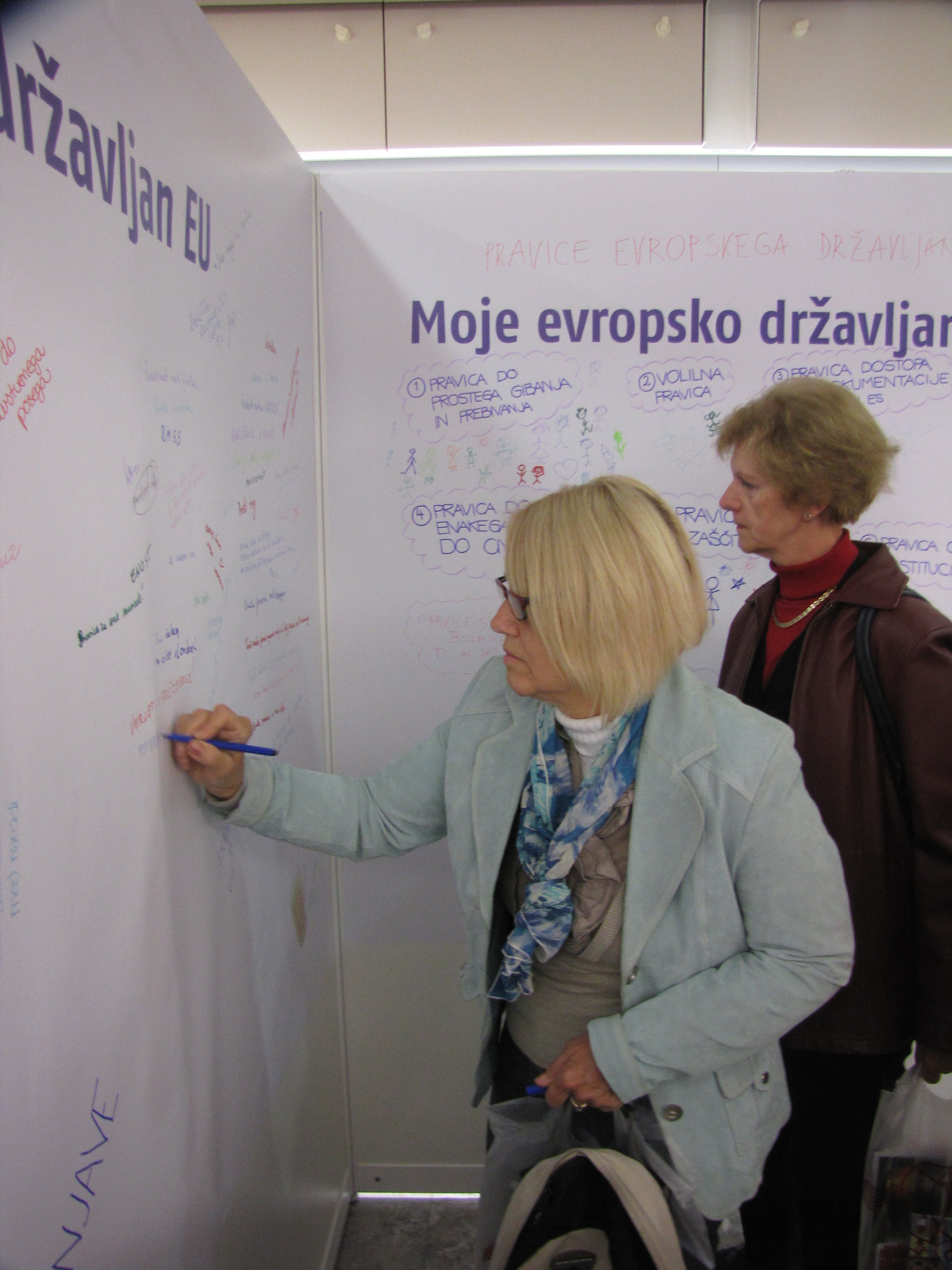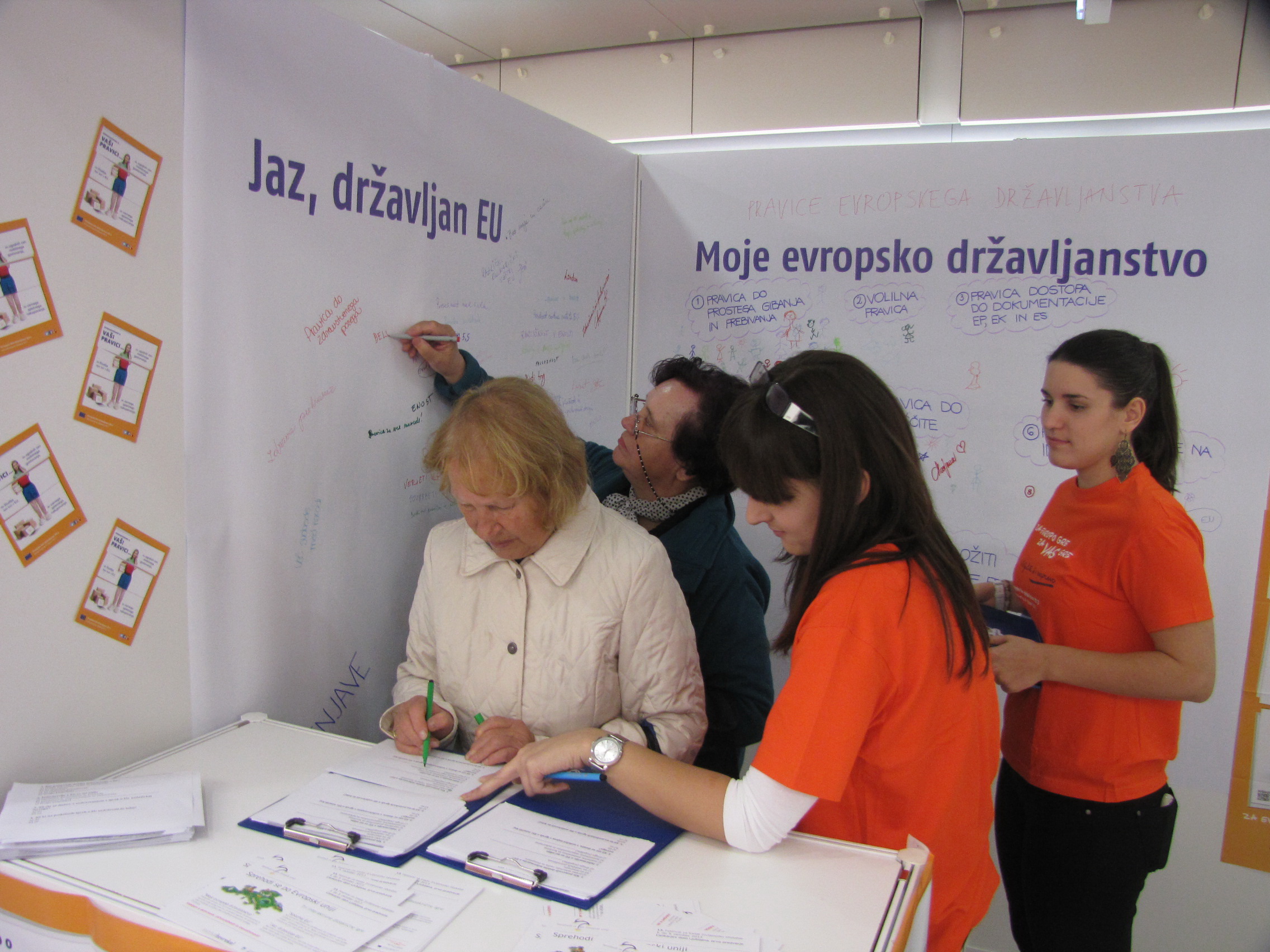 Skozi tri interaktivne didaktične igre, za starejše na temo evropskega državljanstva, se je sprehodilo preko tristo udeležencev. Bili so aktivni, ustvarjalni in inovativni. Ob pomoči (ali brez) prostovoljcev so v »Spoznaj Evropo« spoznavali države evropske unije ter jih označili sličicami, simboli, znamenitostmi. V »Mojem evropskem državljanstvu« so pokazali ustvarjalnost in risarske sposobnosti pod pravicami, ki so jim najbližje. Veliko pozitivnih misli, iskric in idej pa so zapisali na zidu izražanja pod naslovom »Jaz državljan EU«.